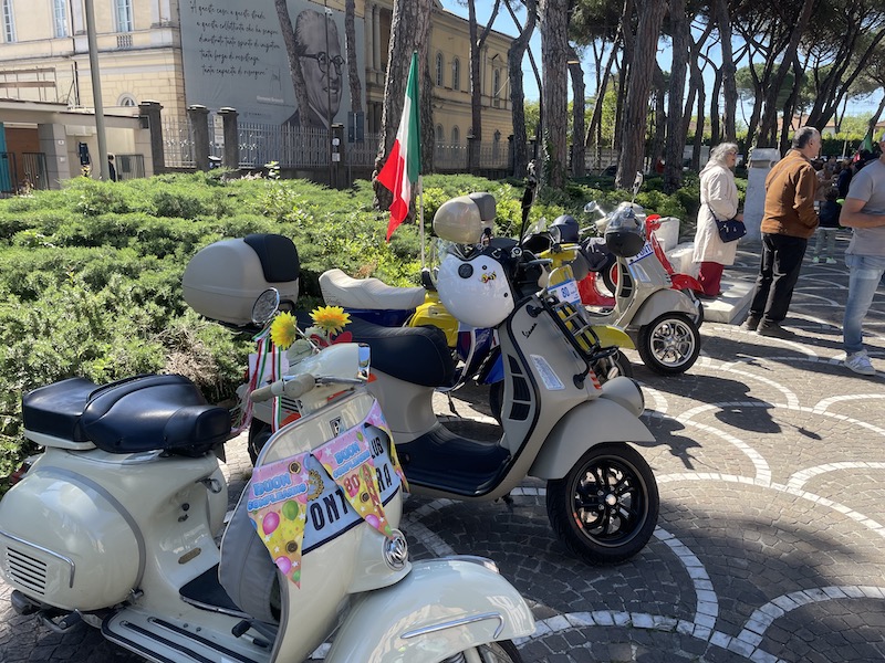 Particolarmente significativa la partecipazione delle Vespa, presenza simbolica che ha richiamato uno dei prodotti iconici della tradizione industriale del territorio in occasione dell’80° anniversario della sua nascita.