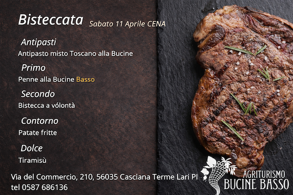 Per questo, sabato 11 aprile, Bucine Basso ha organizzato per tutta la famiglia una splendida Bisteccata di primavera, appuntamento imperdibile per gli amanti della carne e della convivialità. Una golosità irrinunciabile da gustare in un pranzo speciale, da vivere nello spazio interno, in veranda oppure all’aperto, respirando tutta la bellezza della campagna toscana.