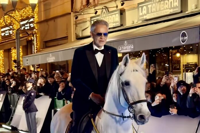 Sette anni dopo la sua ultima apparizione, Andrea Bocelli, celebre tenore di Lajatico, torna al Festival di Sanremo e firma uno dei momenti più intensi della finale della 76ª edizione. L’ingresso è da favola: in sella a un cavallo bianco, come un principe, tra luci soffuse e un Teatro Ariston sospeso tra stupore e nostalgia.