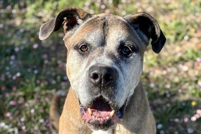 Artù, cane anziano ospite da anni al canile La Valle Incantata di Lajàtico, cerca adozione urgente. Dolce, socievole e abituato al guinzaglio.