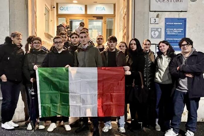 Matteo Becherini e Azione Universitaria a Pisa: studenti in flash mob davanti alla Questura per solidarietà alle forze dell’ordine.