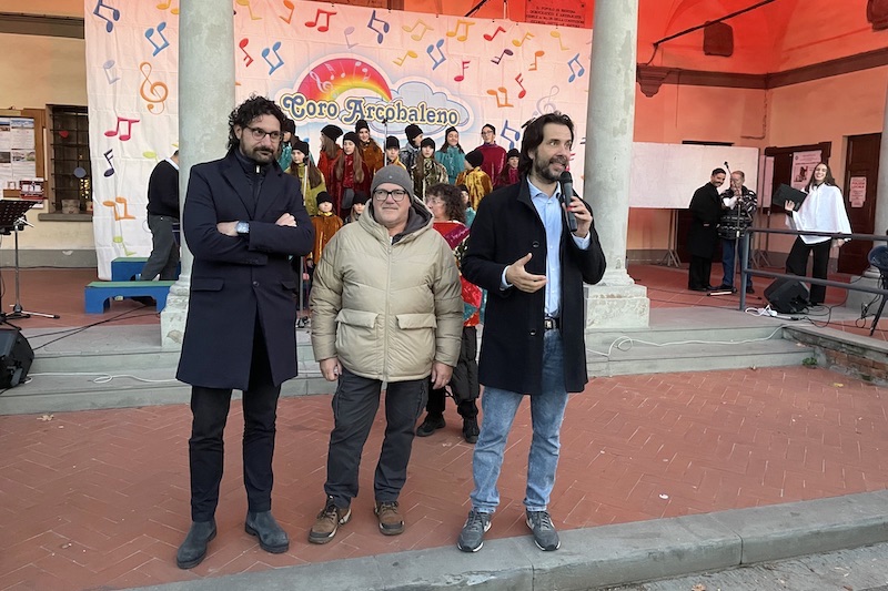 Le iniziative, infatti, non si limitano alle luminarie: il paese ha voluto ampliare l’offerta natalizia portando in piazza non solo la pista di pattinaggio, ma anche i tradizionali teli elastici. In occasione dell’esibizione del coro dei bambini, abbiamo raccolto le testimonianze del sindaco Dario Carmassi, del vicesindaco Alessandro Cai e del presidente della Pro Loco Giovanni Romboli.