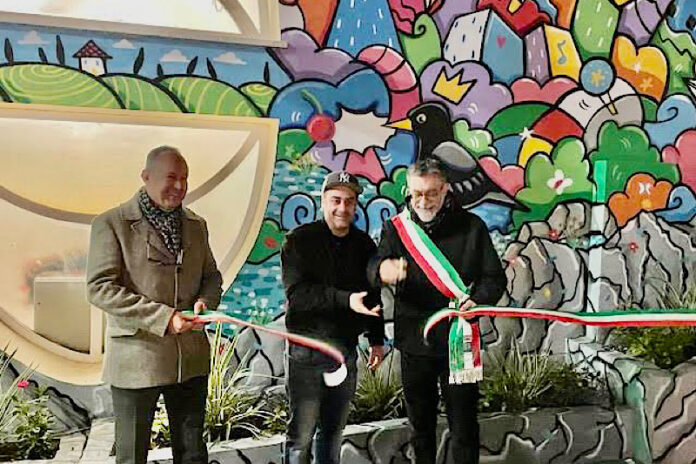 Inaugurato il murales “In volo sulle Terme”. Opera di oltre 30 metri di lunghezza e 3 metri di altezza con parti che raggiungono i 5 metri di Skim.