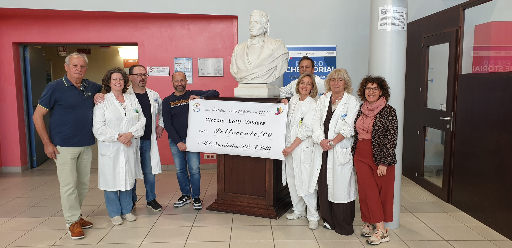 Un gesto concreto a sostegno dei pazienti dializzati dell’ospedale di Pontedera. Nella giornata di giovedì 23 aprile, il circolo “Lotti Valdera” ha consegnato all’Associazione nazionale emodializzati dialisi e trapianto (Aned) il ricavato della lotteria di Pasqua 2026, pari a 700 euro. La somma sarà utilizzata per l’acquisto di attrezzature destinate a migliorare l’assistenza all’interno del reparto di Nefrologia e dialisi.