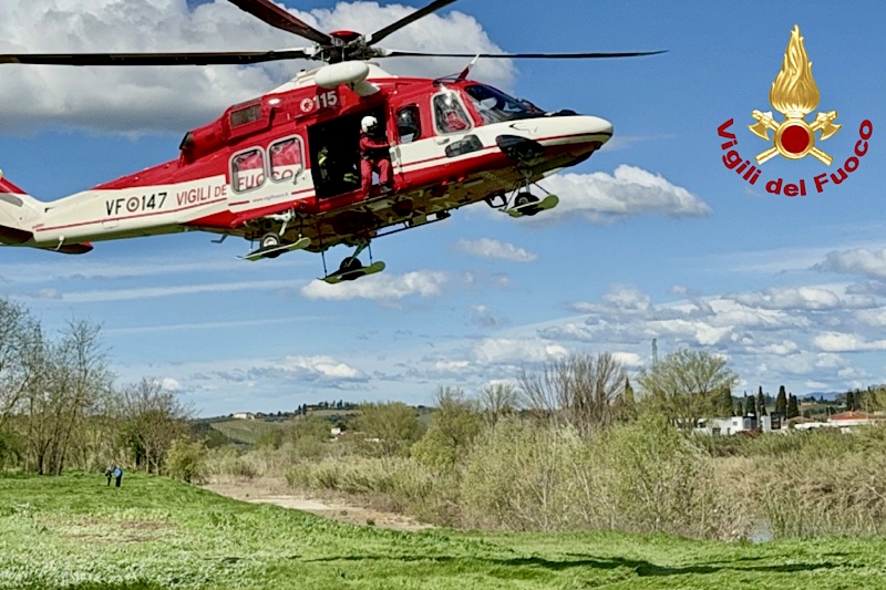 Le ricerche erano state temporaneamente sospese durante la notte e sono riprese nella mattinata successiva con l’impiego di squadre di terra incaricate di controllare nuovamente le sponde del fiume. È stato inoltre richiesto l’intervento dell’elicottero Drago 125 del reparto volo dei Vigili del fuoco di Cecina, che ha sorvolato l’intero tratto dell’Arno da Empoli fino alla foce in mare.