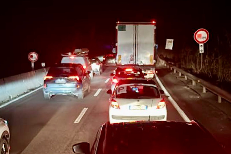 Camion in fiamme blocca il traffico: intervento di Vigili del Fuoco e Polizia Stradale. Lunghe code e rallentamenti.