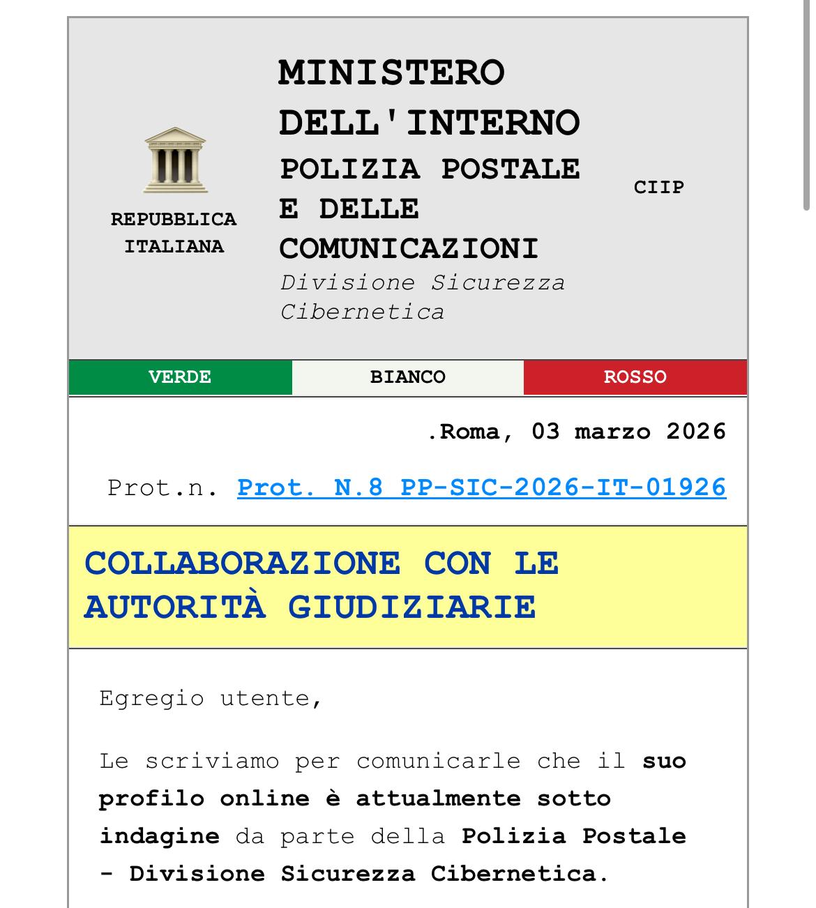 Sta circolando in questi giorni una nuova campagna di phishing che utilizza il nome della Polizia Postale per indurre gli utenti ad aprire allegati o fornire dati personali.