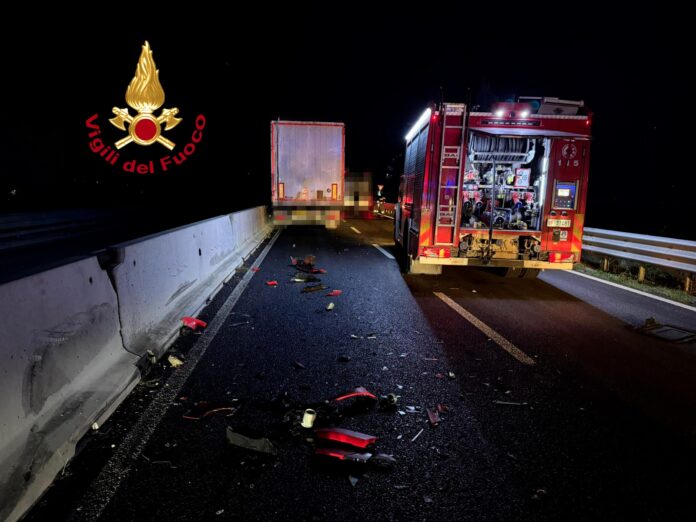 Sul posto è stata inviata una squadra dei Vigili del Fuoco, che ha provveduto alla messa in sicurezza dell’area e alla bonifica della sede stradale contaminata dal carburante. Per consentire le operazioni di soccorso, il tratto interessato è stato temporaneamente chiuso al traffico, con conseguenti disagi per gli automobilisti in transito durante le ore notturne.