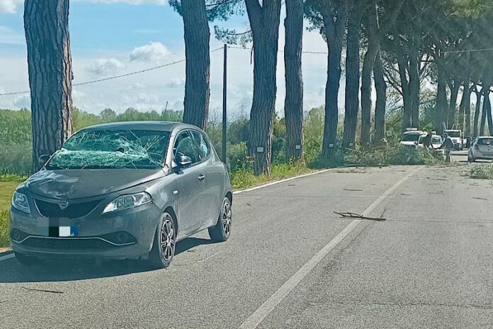 Ramo cade sulla SP2 Vicarese tra Calcinaia e Vicopisano e colpisce un’auto in transito. Nessun ferito, traffico rallentato.