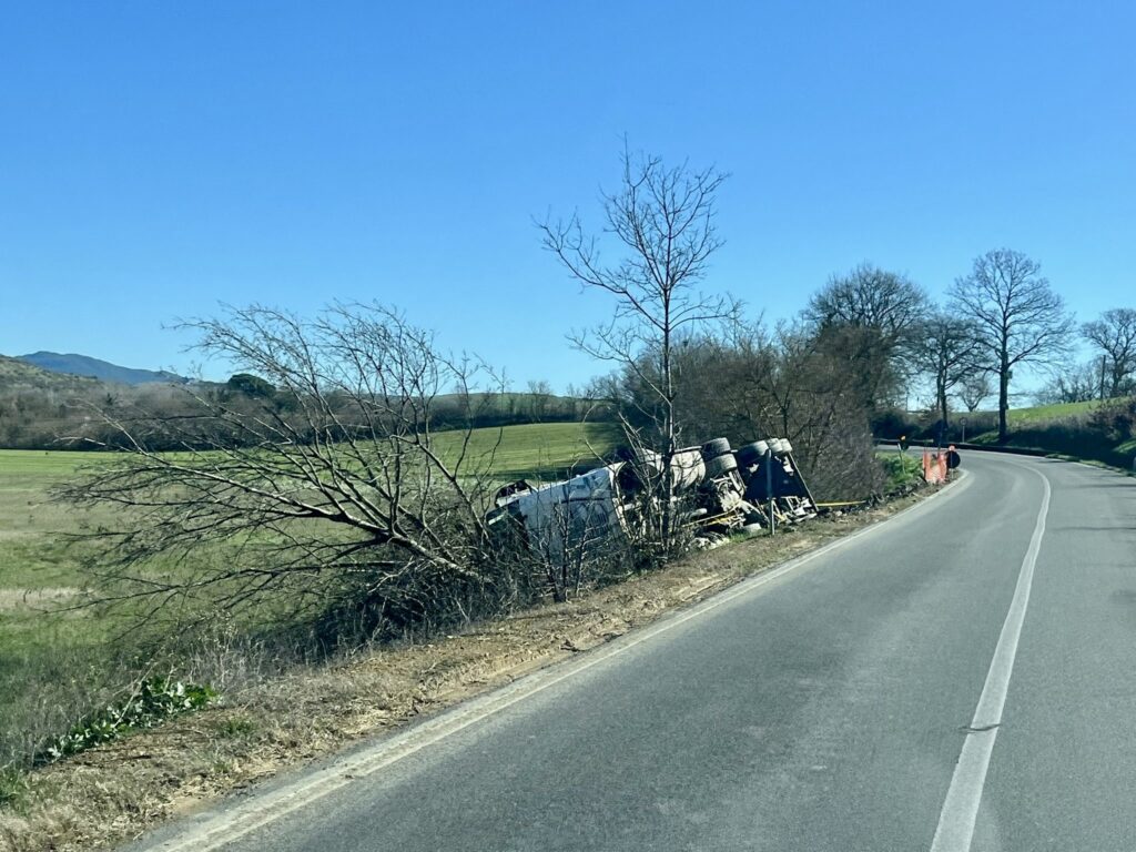 Ieri sera, lunedì 16 febbraio, un mezzo pesante è uscito di strada lungo la SR439, in località “La Mandriola”, nel comune di Lajatico. L’autista, per motivi ancora da accertare, avrebbe perso il controllo del mezzo, che è finito in un fosso ai bordi della carreggiata.