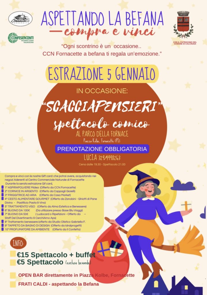 Il funzionamento è semplice: per ogni acquisto nei negozi aderenti, i clienti ricevono dei buoni che li qualificano automaticamente per l’estrazione finale dei premi. La grande giornata conclusiva “Aspettando la Befana” si terrà il 5 gennaio presso il Parco della Fornace, dove le vincite saranno assegnate durante un evento ricco di spettacoli, musica e animazioni pensate per grandi e piccini.