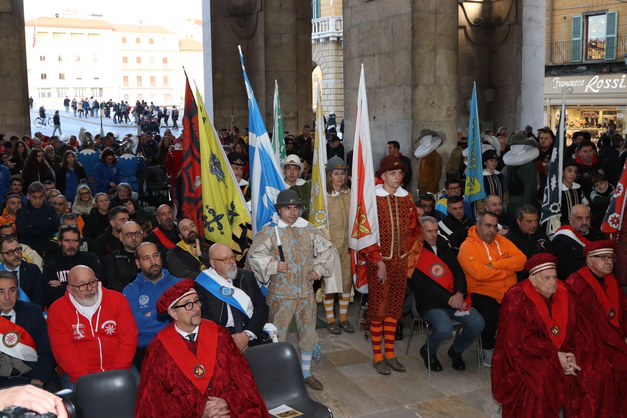 Durante la cerimonia, alla presenza delle autorità cittadine, dei rappresentanti delle Parti di Mezzogiorno e Tramontana, e dei figuranti in costume storico, si è svolta l’investitura dei Capitani delle dodici Magistrature.