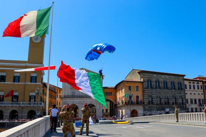 Il momento finale della mattinata è stato caratterizzato da un aviolancio sul Ponte di Mezzo, a cura degli atleti della sezione di paracadutismo sportivo dell’Esercito, e da un flashmob che ha coinvolto gli studenti, realizzato in collaborazione con l’assessorato allo sport del Comune di Pisa e l’ASD Dynamix Studio Danza, con la partecipazione dell’artista Anna Donati e della sua compagnia.