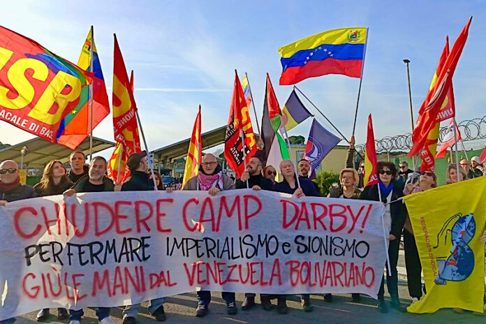 Sabato 17 gennaio, davanti alla base militare statunitense di Camp Darby, l’Unione Sindacale di Base (USB) ha organizzato un presidio contro quella che definisce la “politica di imperialismo e sionismo promossa dagli Stati Uniti nel mondo”. La mobilitazione ha visto la partecipazione di decine di persone, unite nel rivendicare sostegno al Venezuela Bolivariano e alla Palestina, con bandiere e striscioni a simboleggiare la solidarietà dei popoli oppressi.