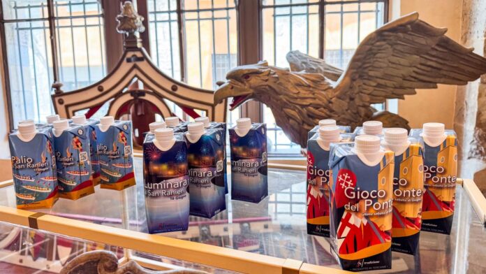«Questi brick in Tetra Pak rappresentano simbolicamente i grandi eventi del Giugno Pisano, ma attraverso il brand Pisa is…, anche ogni altro elemento dell’identità cittadina può essere valorizzato e declinato in forme nuove e originali. Abbiamo già realizzato versioni dedicate da distribuire in diverse attività del centro e ora vogliamo aggiungerne una specifica per il nostro litorale. L’auspicio è che possano essere esposti anche all’interno di ristoranti e strutture ricettive, diventando strumenti concreti di promozione turistica. Inoltre, grazie al QR code presente sulla confezione, è possibile accedere al portale turistico del Comune, con tutte le informazioni su eventi, itinerari e luoghi da visitare».