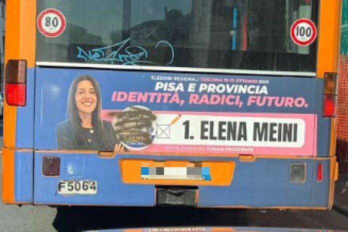 Episodio di vandalismo ai danni di un mezzo pubblico a Pisa. A farne le spese è stato un autobus di linea con la pubblicità elettorale di Elena Meini, Capogruppo in Consiglio regionale della Lega e capolista a Pisa e provincia.