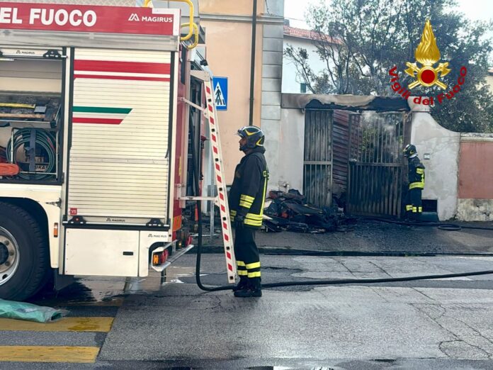 Incendio a Marina di Pisa: un garage avvolto dalle fiamme. Vigili del Fuoco intervenuti, due motociclette danneggiate.