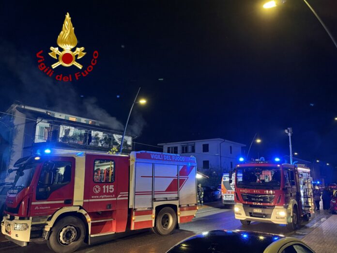 FUCECCHIO — Paura nella notte tra sabato 14 e domenica 15 febbraio in Viale Cristoforo Colombo, dove un incendio è divampato all’interno di un appartamento situato all’ultimo piano di un edificio residenziale di due piani fuori terra.