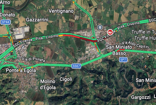 Sopra alleghiamo lo screenshot di Google Maps con lโ€™indicazione del tratto riportato in rosso per coda, interessato dallโ€™incidente.