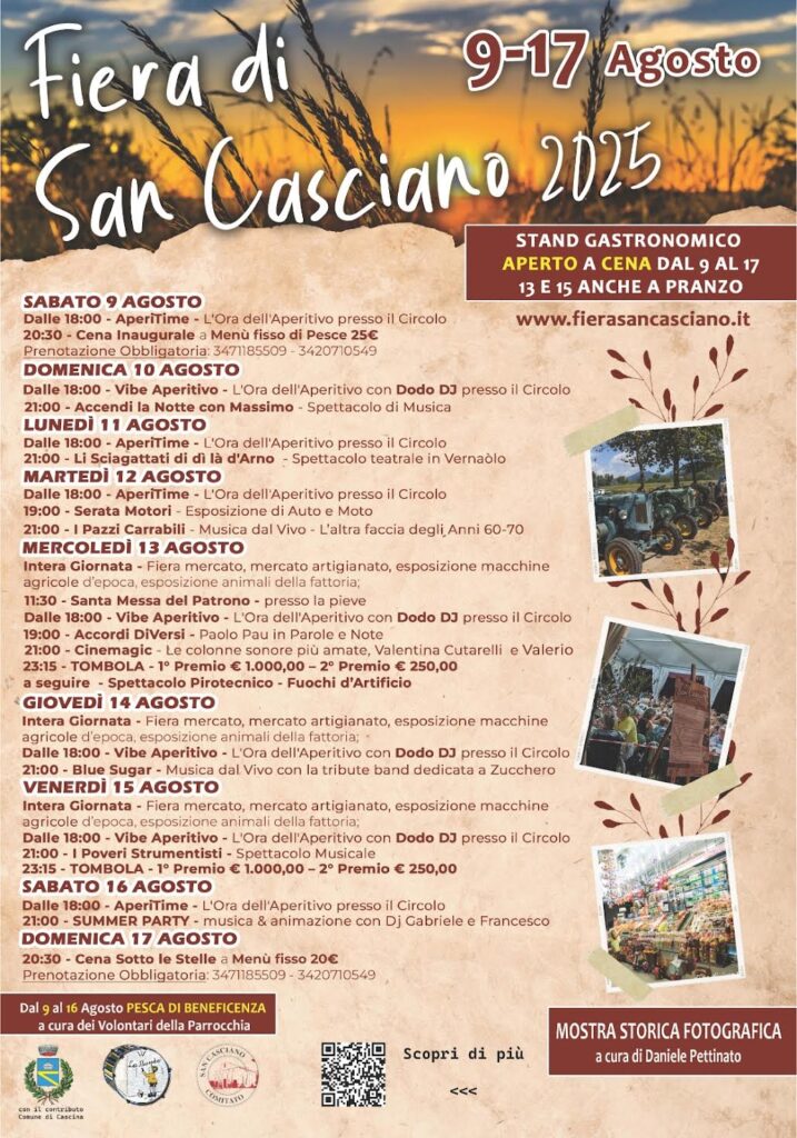 Nove giorni di spettacoli, musica, buon cibo e tanta voglia di stare insieme all’insegna della tradizione. La Fiera di San Casciano è pronta ad animare la frazione dal 9 al 17 agosto, con i suoi banchi classici (dalle cipolle ai dolciumi), i mezzi da lavoro agricoli e gli animali.