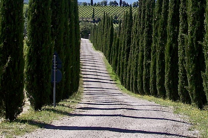Via del Silenzio, uno dei percorsi più suggestivi e identitari di Lajatico, dove i cipressi contribuiranno a rafforzare l’atmosfera unica che accompagna residenti e visitatori.