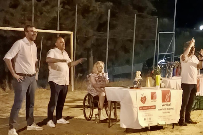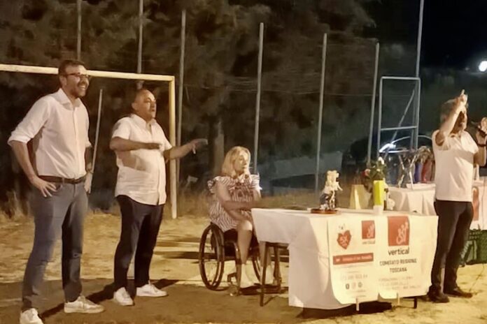 La serata di ieri ha regalato emozioni indimenticabili: alle 21:30, presso il campo sportivo, si è tenuta un’asta condotta da Marco Vincent, durante la quale sono stati messi in vendita gli oggetti realizzati dai ragazzi nei laboratori creativi di riciclo guidati da Cinzia Chiarini, Presidente del Comitato Vertical Toscana. Il ricavato sarà interamente devoluto alla Fondazione Vertical, per sostenere la ricerca sulle lesioni midollari.