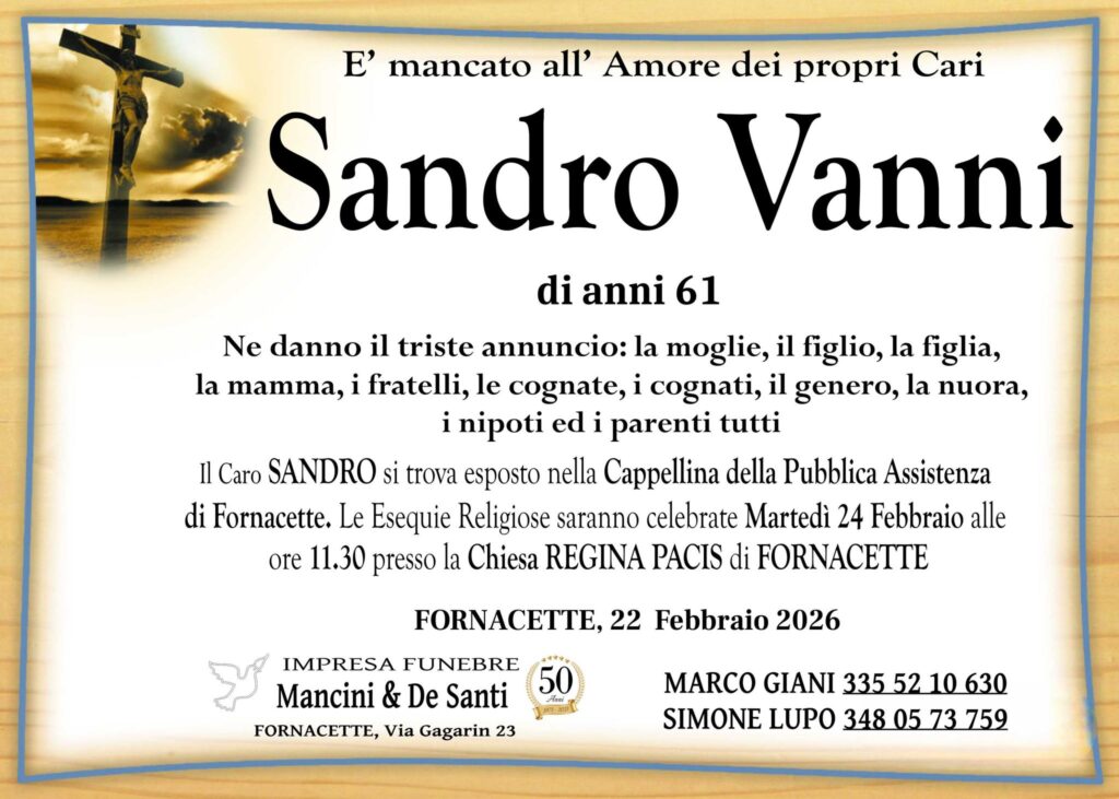 La notizia ha lasciato nello sconforto familiari e amici. Ne danno il triste annuncio la moglie, il figlio, la figlia, la mamma, i fratelli, le cognate, i cognati, il genero, la nuora, i nipoti e i parenti tutti.