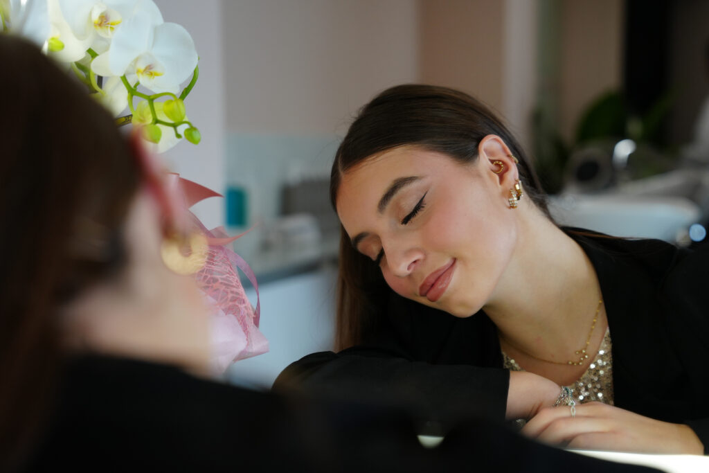 Il nuovo salone riflette pienamente questa evoluzione. Toni caldi che richiamano la terra, il marrone e l’oro creano un’atmosfera avvolgente, intima, pensata per far sentire chiunque a casa. Qui non si viene solo per i capelli, ma per concedersi una pausa vera. È stata realizzata anche un’area relax con postazione lavaggio ispirata al metodo coreano: ci si può distendere su un lettino e lasciarsi coccolare tra massaggi, oliature e perfino lo Shirodara, l’antica tecnica ayurvedica della colata di olio caldo sulla testa, per un’esperienza profondamente distensiva.