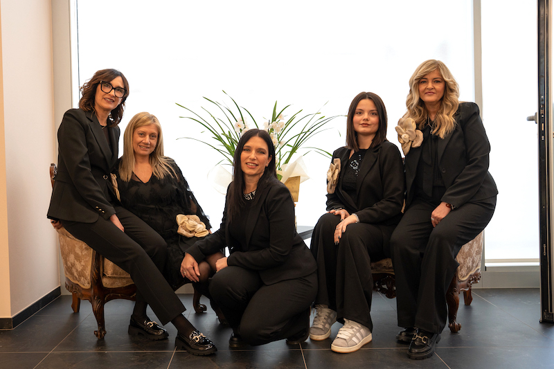 Poi arriva l’istante più intenso. Monica si emoziona, la voce si incrina, gli occhi si riempiono di gratitudine. Ringrazia l’architetta, ma soprattutto le sue “bimbe” – Sonia, Monica, Lisa e Matilde – collaboratrici fidate e cuore pulsante del salone. Sonia e Monica sono al suo fianco fin dal 5 maggio 2002, quando tutto ebbe inizio in un piccolo negozio vicino al Parcheggio Multipiano di Peccioli. L’8 luglio 2009 il trasferimento nella sede attuale, in Terzo Viale sempre a Peccioli. Oggi, dopo oltre vent’anni di lavoro e clienti affezionati, si apre una nuova fase, ancora più consapevole e ambiziosa. L’abbraccio di gruppo che segue racconta meglio di qualsiasi discorso la forza di questa squadra.
