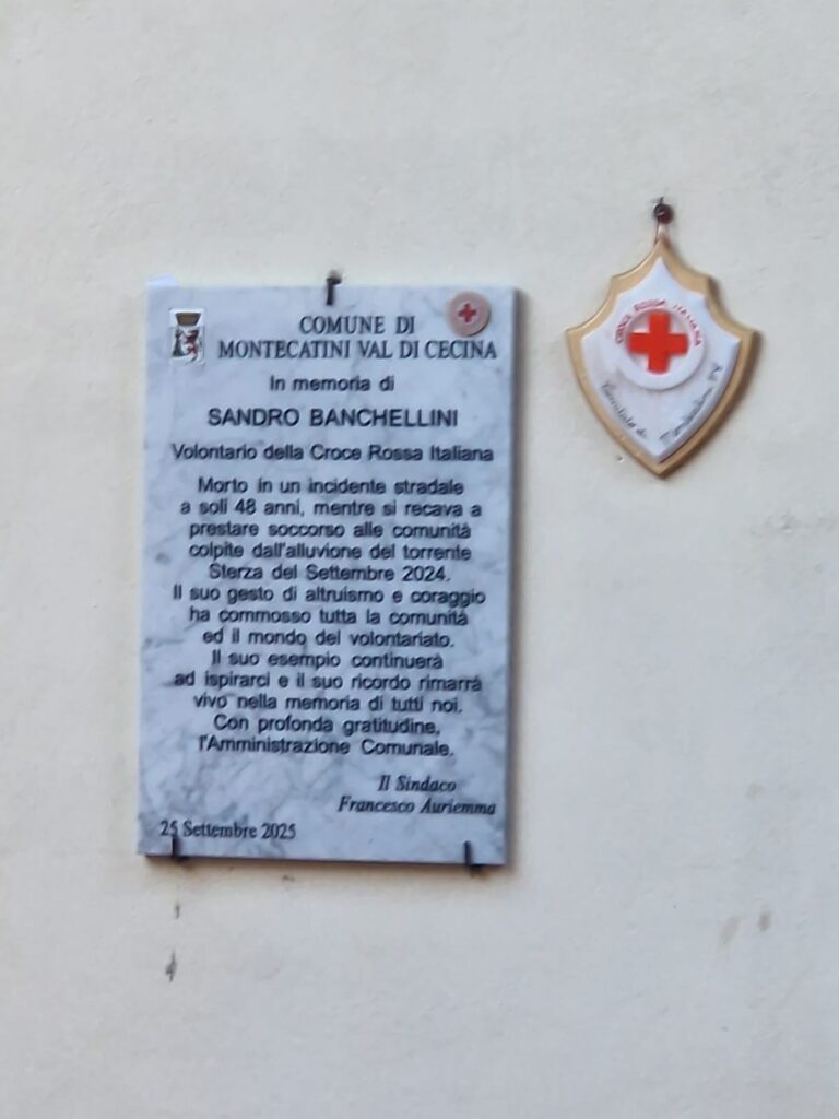 Montecatini Val di Cecina si è stretta ieri in un momento di profonda commozione e orgoglio collettivo per ricordare Sandro Banchellini, volontario della Croce Rossa Italiana e Medaglia d’Oro al merito, scomparso il 25 settembre 2024 in un tragico incidente stradale sulla Fi-Pi-Li.