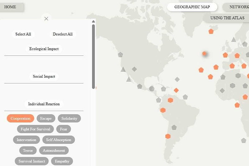 L’Atlante interattivo LAVA è il cuore del progetto: uno spazio visivo e relazionale che traduce in forma digitale il percorso di ricerca. In questo contesto, le opere letterarie non sono semplici testimonianze, ma diventano laboratori di emozione e pensiero, luoghi in cui individui e comunità elaborano la paura, la perdita e i processi di ricostruzione. Ogni nodo dell’atlante mette in relazione eventi reali come terremoti, eruzioni e luoghi del disastro con simboli e metafore culturali, conseguenze storiche e sociali e i diversi linguaggi filosofici e poetici che raccontano il rischio, il trauma e la rinascita. Ne emerge un ecosistema narrativo che rende accessibile e condivisibile la complessità delle risposte umane ai fenomeni estremi.