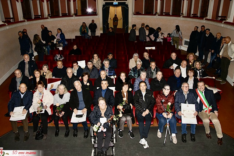 Per festeggiare questo importante traguardo, quello delle nozze d’oro, le coppie che si erano sposate nel lontano 1975 sono state invitate al teatro Verdi, dove ad attenderle c’era il sindaco Roberto Giannoni.