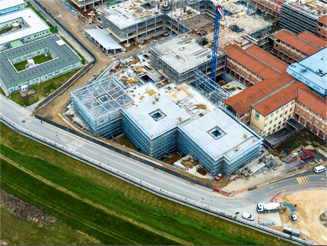 Due mesi fa era stata inaugurata la centrale tecnologica CT0 (per la quale sono in corso i collaudi funzionali) che, da sola, costituisce una delle tappe fondamentali dell’intero appalto e il fiore all’occhiello del futuro nuovo ospedale. Questa imponente realizzazione, dotata di motori di potenza straordinaria e tecnologie di ultima generazione, per garantire in sicurezza continuità di alimentazione e produzione anche in caso di black-out elettrico generale, rappresenta infatti il nucleo centralizzato destinato alla produzione delle energie per tutti gli edifici (nuovi e preesistenti), oltreché al ricovero e allo smistamento logistico delle merci ospedaliere. Il tutto sotto logiche di efficientamento energetico.