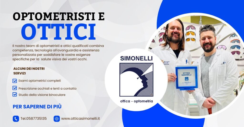 In un mondo in cui vedere bene è sempre più importante, sia per motivi di salute che di stile, c’è chi da 80 anni si dedica con passione, competenza e innovazione alla cura della vista. Parliamo di Ottica Simonelli, storico centro ottico di Ponsacco, in Via di Gello 95, oggi guidato da Alessandro Simonelli e Gabriele Simonelli. Un punto di riferimento non solo per chi cerca occhiali da vista o da sole, ma soprattutto per chi desidera soluzioni su misura, tecnologicamente avanzate e perfettamente adatte alle proprie esigenze visive.