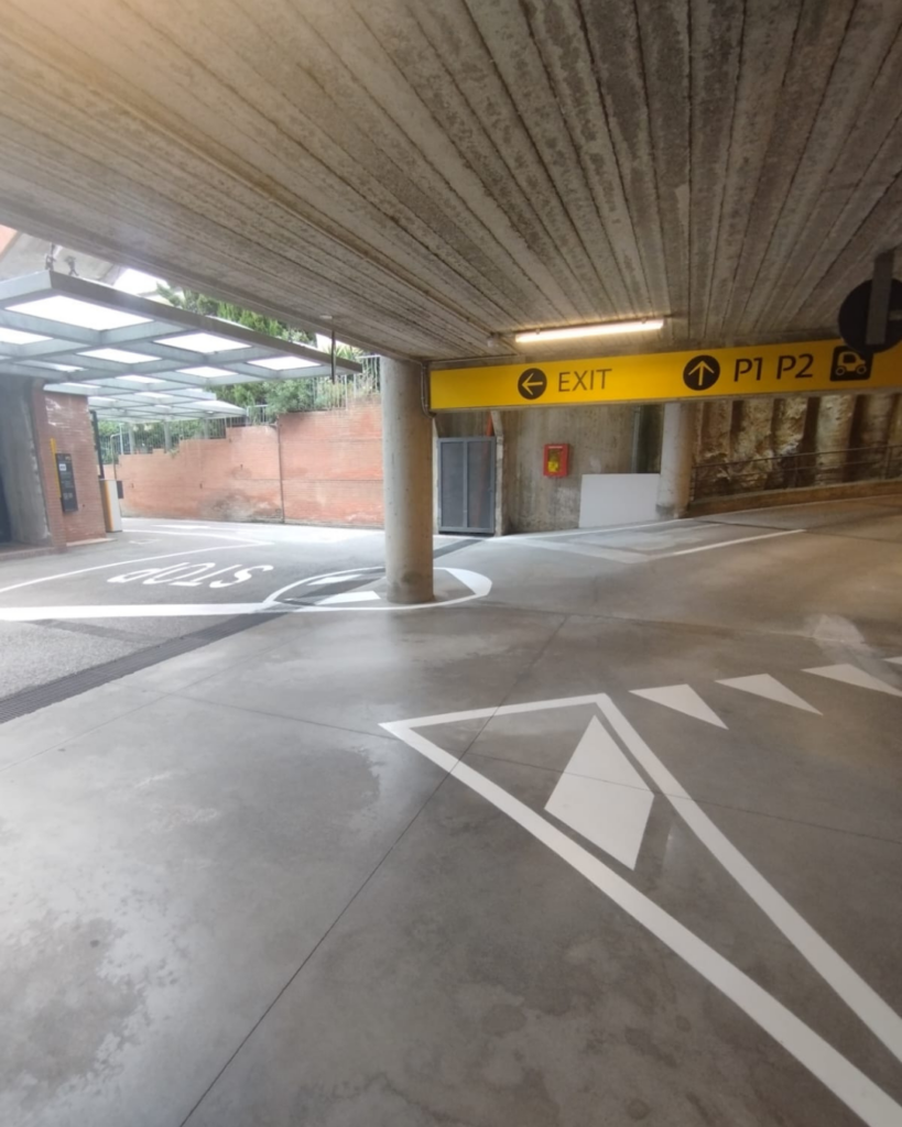 Particolare attenzione è riservata alla riqualificazione estetica e funzionale degli spazi, con interventi su pavimentazioni, pareti e rampe, all’utilizzo di un sistema cromatico coordinato per tutti i piani del parcheggio e all’introduzione di un nuovo impianto illuminotecnico e di videosorveglianza. La luce, calda e diffusa, contribuirà a migliorare sicurezza, comfort visivo e percezione complessiva del luogo.