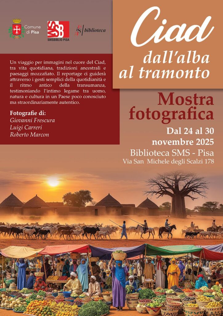 L’esposizione, patrocinata dal Comune di Pisa, presenta il reportage realizzato in Ciad nel febbraio 2025 da Giovanni Frescura, curatore della mostra, insieme ai colleghi Luigi Carreri e Roberto Marcon per conto della GIZ – Deutsche Gesellschaft für Internationale Zusammenarbeit.