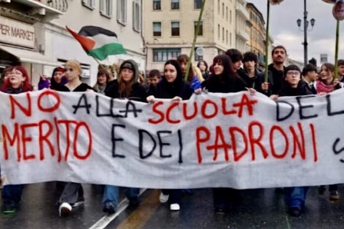 Gli studenti hanno espresso la loro contrarietà alla riforma scolastica voluta dal ministro dell’Istruzione Giuseppe Valditara, denunciando quella che definiscono una “militarizzazione e aziendalizzazione della scuola”. In testa al corteo campeggiava uno striscione con la scritta “No alla scuola del merito e dei padroni”.