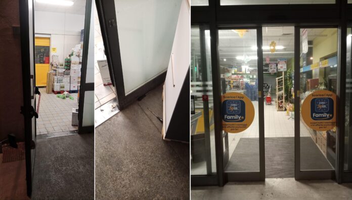 Erano da poco passate le 24, nella notte tra l’8 e il 9 aprile, quando alcuni malviventi, probabilmente ben organizzati, sono riusciti a forzare la porta scorrevole d’ingresso del discount, introducendosi all’interno con l’intento di sottrarre merce e altri valori. Un’azione rapida e studiata nei dettagli che tuttavia non ha fatto i conti con l’efficacia del sistema di allarme antifurto e con la prontezza operativa delle Guardie di Città.