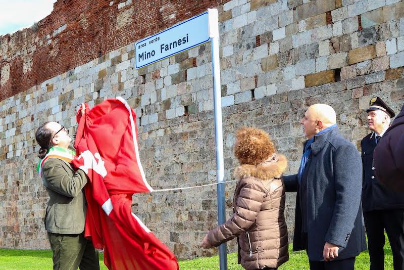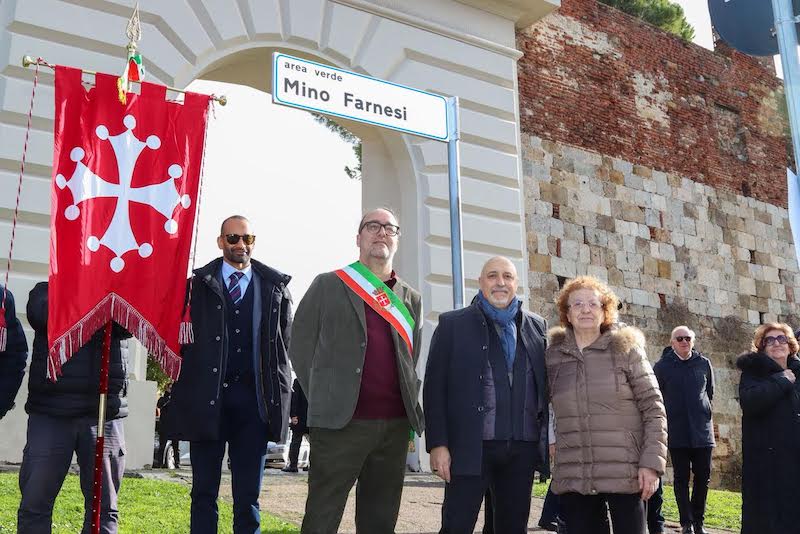 Si è tenuta questa mattina, giovedì 29 gennaio, la cerimonia d’intitolazione a Flaminio Farnesi detto Mino, dell’area verde, a ridosso delle Mura, che costeggia via Bonanno Pisano. Alla cerimonia hanno partecipato il vice sindaco di Pisa, Filippo Bedini, l’assessore alla toponomastica e ai servizi demografici Amanuel Sikera, e Bruno Farnesi, figlio di Mino in rappresentanza della famiglia.