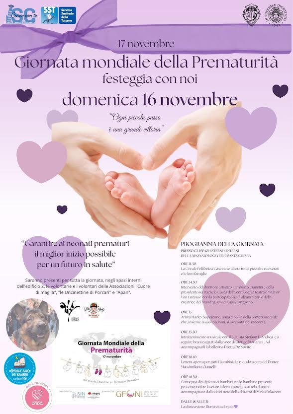 A Pisa in Aoup le celebrazioni si anticipano a domenica 16 al Santa Chiara all’esterno e all’interno dell’Edificio 2 con un ricco programma di iniziative (inizio alle 11.30) in linea con lo slogan scelto quest’anno: “Garantire ai neonati prematuri il miglior inizio possibile per un futuro in salute”.