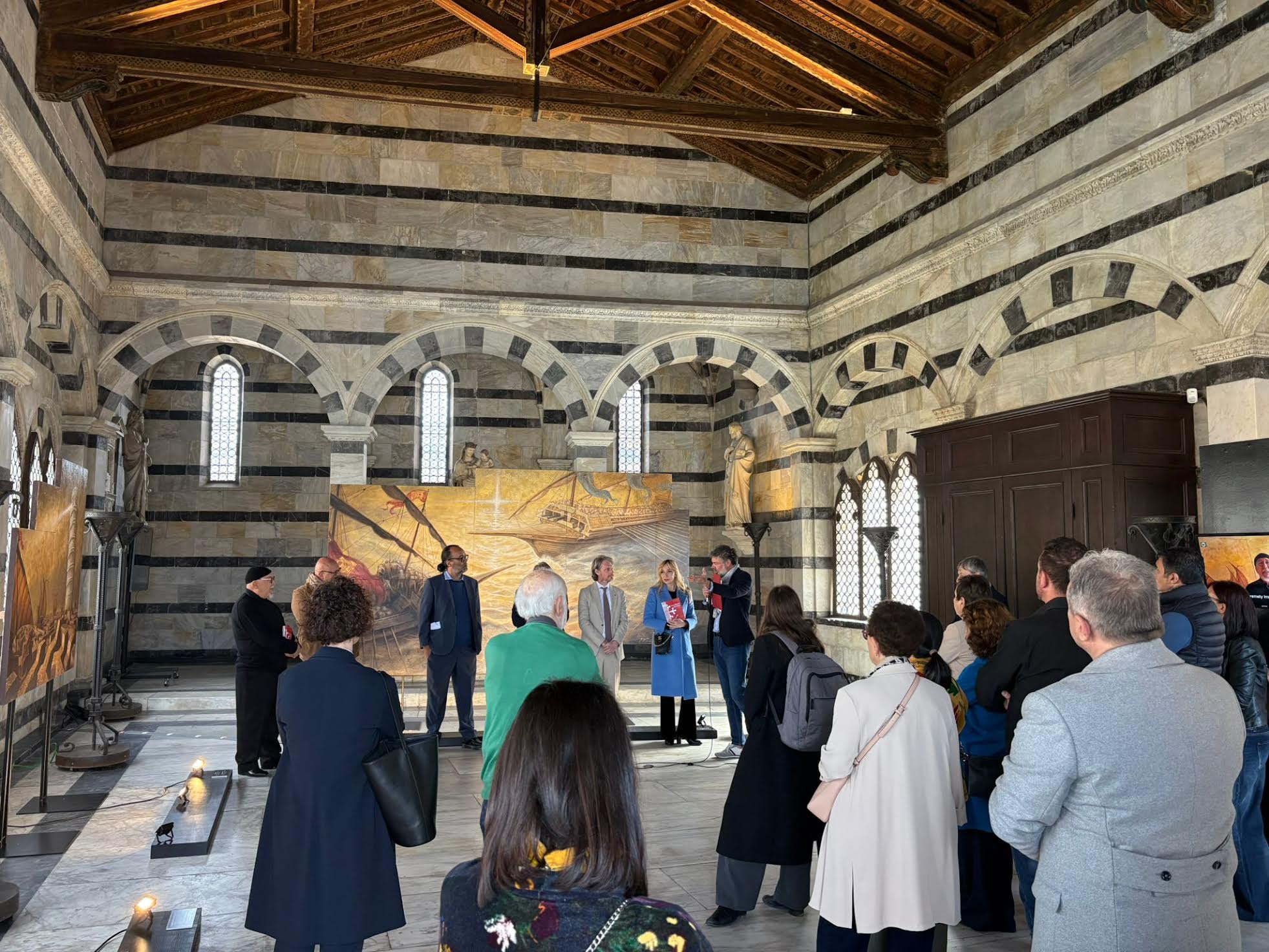 Alla Spina, proprio a pochi metri da dove venivano costruite le navi, si trovano invece tre quadri che raccontano la storia della Repubblica Marinara: si parte dalla Battaglia di Lepanto, dove Pisa offrì un contributo importante, in un evento che rappresentò un forte momento di svolta nella storia della cultura europea.