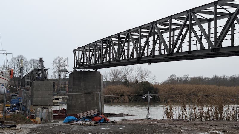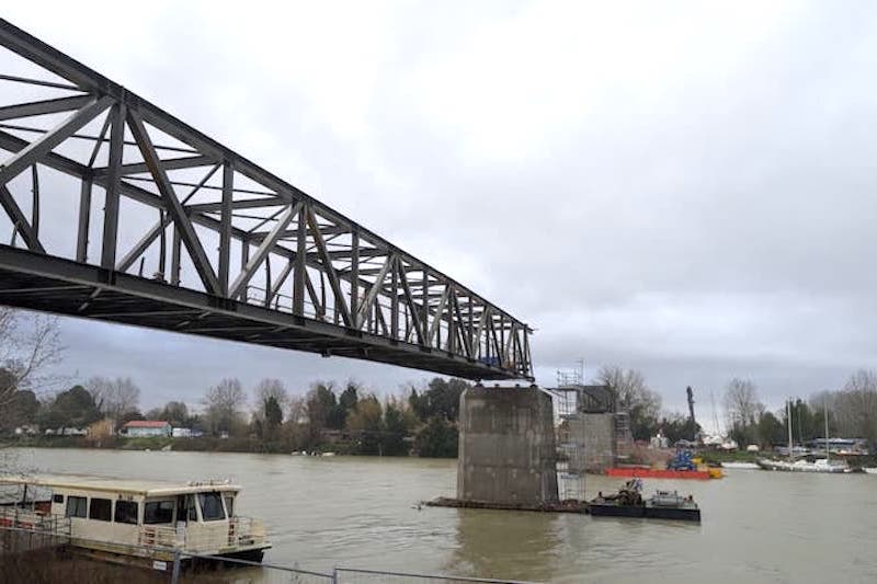 Ponte ciclopedonale di San Rossore: montata la terza parte della passerella sull’Arno [FOTO]