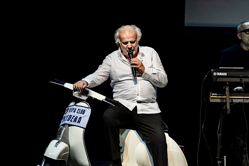 All’attore, dopo il saluto del Sindaco Matteo Franconi, omaggi del Vespa club di Pontedera ed un quadro con un suo ritratto realizzato dall’artista Pier Toffoletti, che ha esposto le sue opere nel foyer del Teatro.