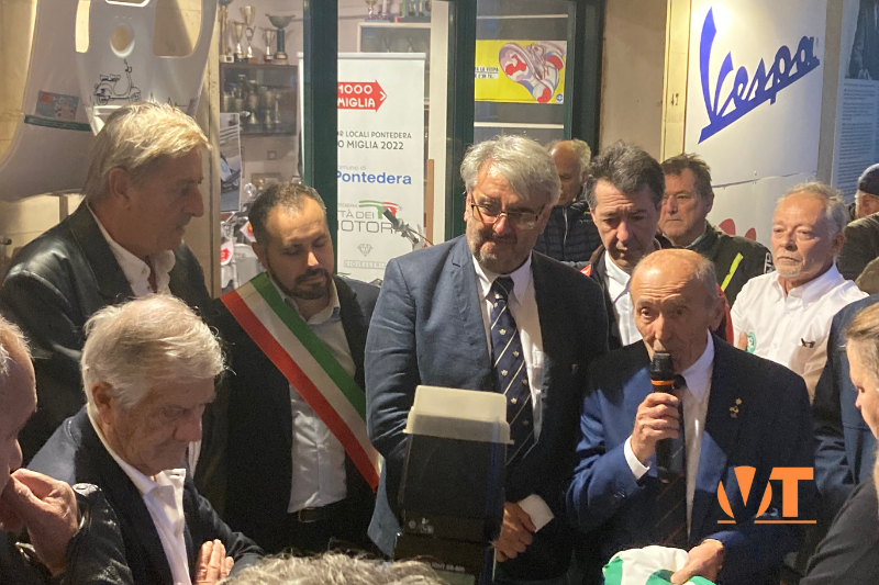 La sede, ospitata negli ex locali del Bar La Loggia, era già stata inaugurata nell’aprile dello scorso anno in occasione dei Vespa World Days, ma con l’arrivo di Agostini in città è stata ufficialmente intitolata a Franceschini, figura amatissima del mondo dei motori e della comunità pontederese.