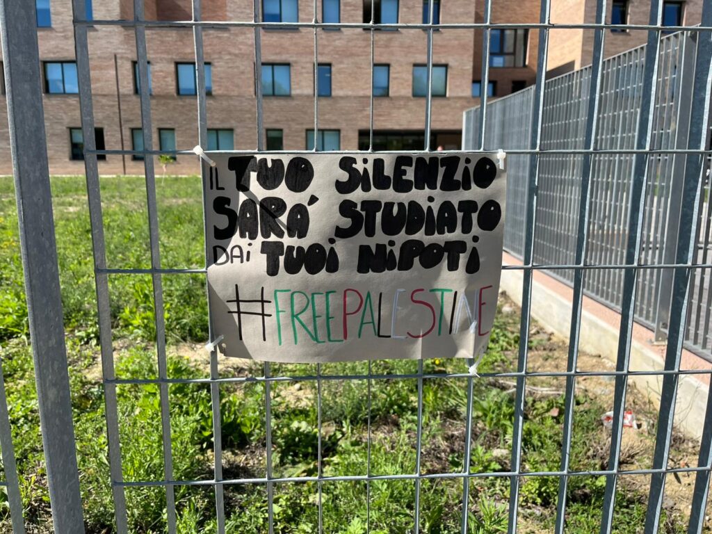 Con cartelloni e bandiere, gli studenti hanno osservato un momento di silenzio in memoria delle vittime del conflitto israelo-palestinese, trasformando l’istituto in un luogo di riflessione collettiva. “Essere cittadini consapevoli significa anche sapere prendere posizione quando l’ingiustizia colpisce persone innocenti”, hanno sottolineato gli studenti e le studentesse.