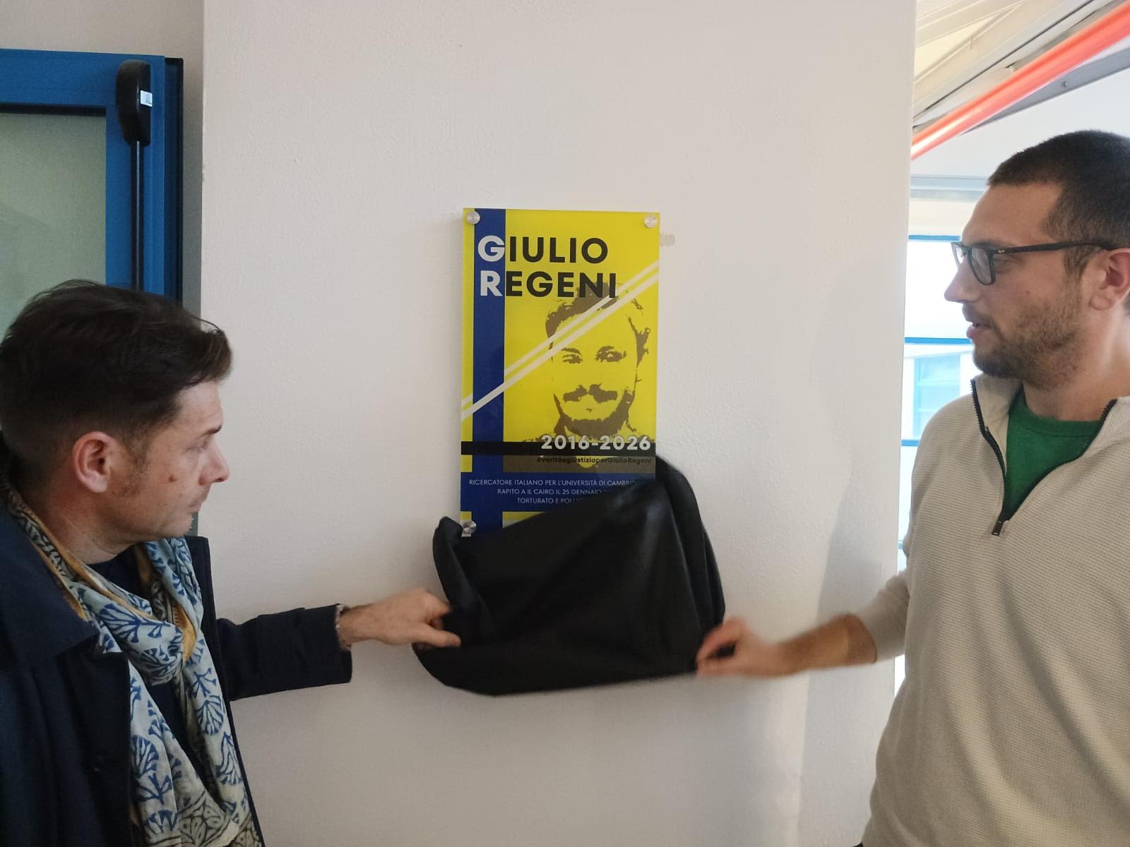 È stata scoperta ieri, al primo piano della biblioteca Gronchi, una targa che ricorda Giulio Regeni a dieci anni dalla sua scomparsa. E’ raffigurata l’immagine del ricercatore universitario rapito, torturato ed ucciso in Egitto all’inizio del 2016.