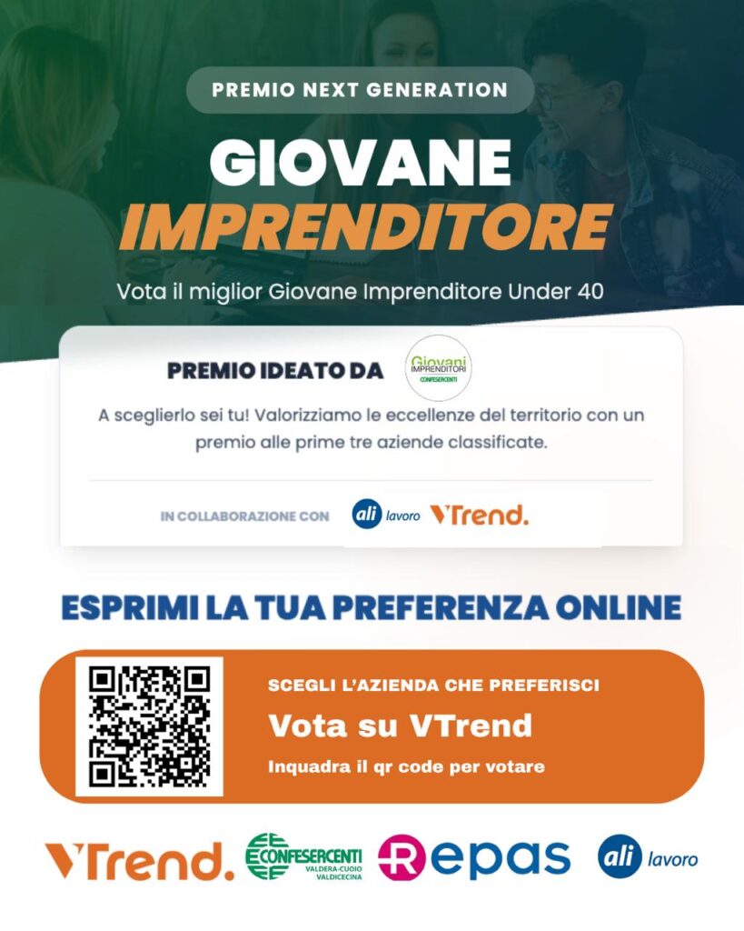 Ma c’è di più: a scegliere i primi tre imprenditori sarai proprio tu! Grazie al sondaggio online lanciato da VTrend, potrai esprimere la tua preferenza e contribuire a far emergere le realtà più promettenti e innovative del nostro territorio.