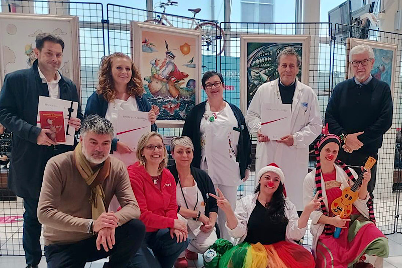 All’inaugurazione di stamani hanno partecipato i clown dottori di Chez nous… le Cirque mentre il Comune di Pontedera ha donato alcune copie del libro di Pinocchio al reparto di pediatria. Presenti l’assessore alla cultura Francesco Mori, Luca Nardi, direttore del presidio ospedaliero, Claudia Maggi, responsabile della pediatria e neonatologia, assieme al personale sanitario, Filippo Lotti, curatore della mostra e il presidente della Fondazione Stella Maris Giuliano Maffei. Fonte: Comune di Pontedera