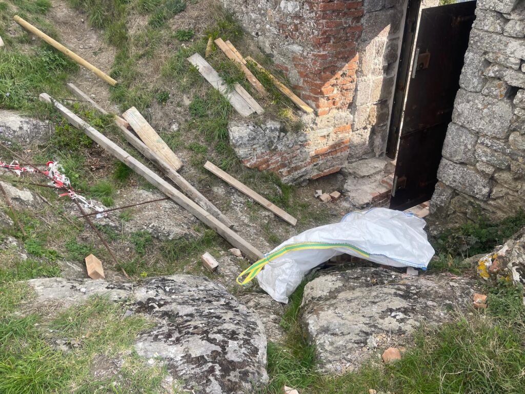 Negli ultimi giorni è stata segnalata alle competenti Autorità la distruzione di uno scalino, il taglio delle recinzioni di sicurezza, il danneggiamento della malta muraria e il furto di materiale e attrezzature destinati ai lavori di restauro e messa in sicurezza.