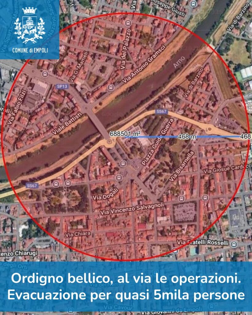 Dalle ore 9 circa sono iniziate le procedure di disinnesco, rigorosamente sorvegliate dagli artificieri. Non è consentito transitare né entrare nella zona rossa fino a nuova comunicazione ufficiale. La riapertura della zona sarà annunciata tramite segnale acustico e tramite i canali istituzionali dei Comuni di Empoli e Vinci, compresi siti web e social network.